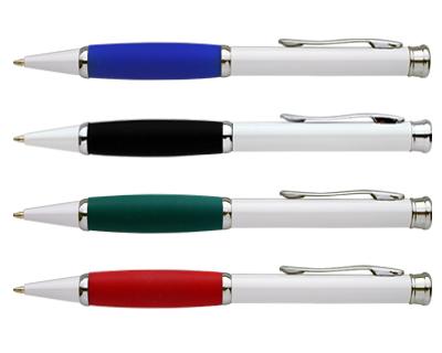 This pens have a solid white body, swan style clip and a twist action.